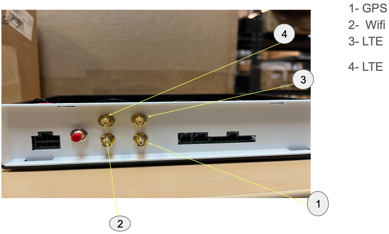 v3 attendant SMA connectorsAs noted above, on v4 attendants the SMA connectors are not labeled, so see the previous illustration.