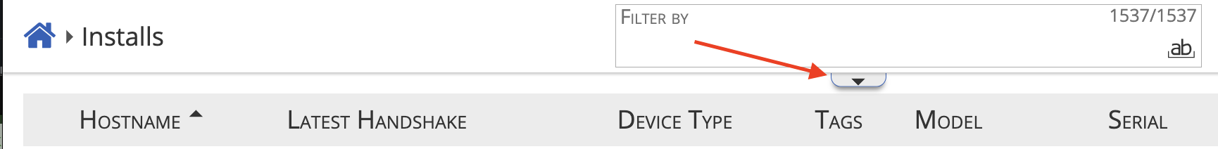 If you do not see the device you are looking for, the most likely reason is that you have the filters on that page set to exclude what you are looking for. Set the filters to the most inclusive, as shown in the screenshot below: for device types, select all three types, and for install state, select all: